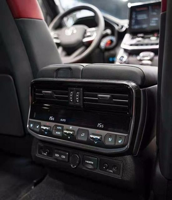 2022款丰田酷路泽LC300即使将目光转向后排,也在宽大的尺寸编排(长4950mm、宽1945mm、高1980mm,轴距2850mm)下,拥有了类似“大沙发”的布局。并且,前排座椅椅背挂着的大尺寸多媒体屏,加之分区空调调节区间,也让它多了几分豪华感。