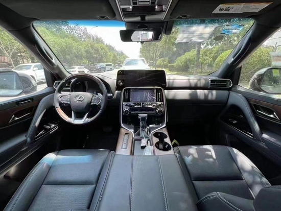 22款雷克萨斯LX600全新设计的多功能方向盘、中控台、车门内侧均由真皮及珍贵实木内饰包裹,半苯胺高级真皮座椅给予乘客恰到好处的支撑和柔软舒适的触感。而水平式仪表盘设计,可以让驾驶者更清楚掌控车辆的位置与状态,提供道路与越野的操控感。12.3英寸超大液晶显示屏创下同级之最,分辨率达1280*480,新增的大尺寸全彩抬头显示器可分三列显示丰富信息,成为全系标配。