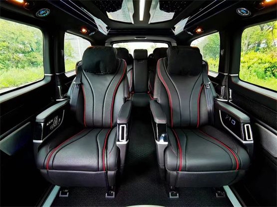 罗伦士天境版豪华商务车后排打造环抱式座舱,三排座椅采用同等真皮包覆,带有多项电动调节功能,即使宾客乘坐第三排也不屈尊,三排同样为宾客营造出惬意美好的休憩环境。
