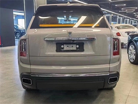 劳斯莱斯库里南尾部设计十分简洁,并没有采用过于华丽的装饰,矩形尾灯组颇具新意,内部还加入了直立的细灯条,点亮后视觉效果极佳。该车还装载了金属排气管和防撞击滑板,进一步彰显其动力与性能。