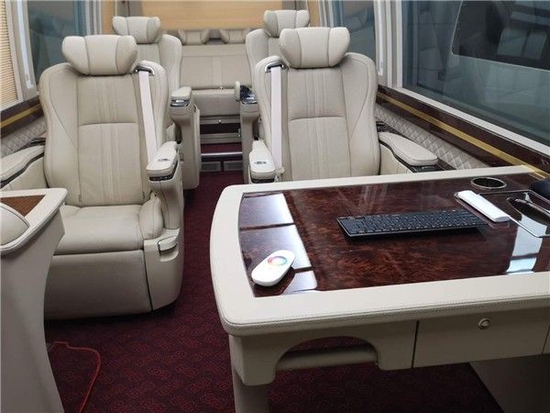 对于座椅的选择,我们可以根据自己的需要进行选择,豪华的真皮座椅或者舒适的全进口埃尔法 (配置|询价)座椅,另外增加办公桌冰箱等。我们可以在冰箱中放置老人需要携带的药品或食物,给他们的旅行带来更多的舒心享受。座椅的设计是丰田考斯特改装商务车最主要的一个部分,其他的设计也有着与众不同处。