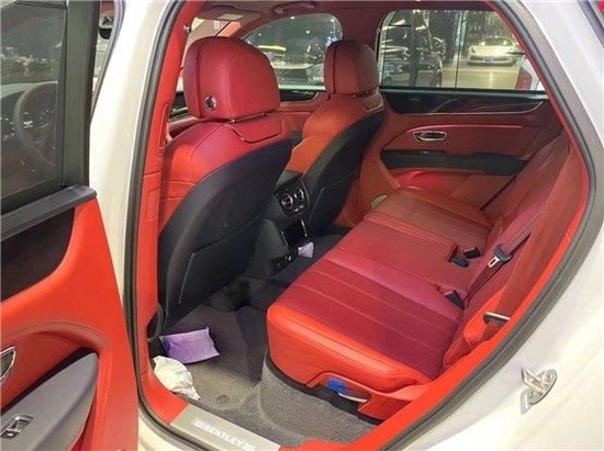 22款宾利添越车尾部分,新款添越使用了宾利最新家族式的尾部设计,整体看上去十分简洁、椭圆形尾灯犹如两颗珠宝,十分璀璨。 双边共四出的排气,标志着新款宾利添越依然有着十分强悍的性能。