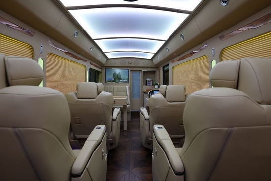 以米色为主色调再加上檀木的点缀,沉稳大气更适合商务接待。座椅采用进口埃尔法座椅,人体工程学设计,舒适度可想而知,通风加热靠背腿托等功能。a380空客顶分为商务模式娱乐模式,氛围灯光随心而变。
