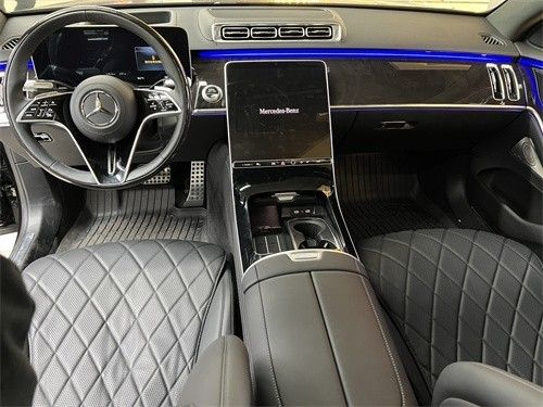 奔驰S580内饰中控台垂瀑式中央触控屏从中控台纵向延伸,凸显出了简约的设计感。