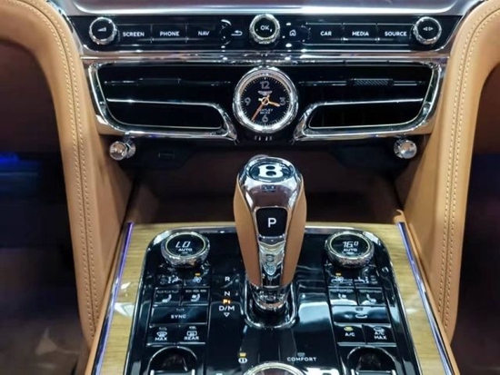 22款宾利飞驰内饰的部分上,中控台不论是从造型上还是设计的理念上都充满了复古典雅的气质。然而用料才是这台车最大的亮点,大面积的胡桃木饰板的镶嵌犹如玉石般滋润人心,细腻的镀铬工艺及造型更是深入人心。
