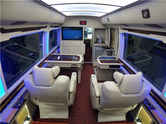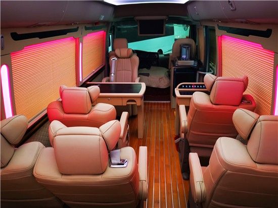 至于在座椅或者地毯的选择上,我们可以了解到,地毯和座椅都不同的型号和材质,我们可以根据自己的喜好选择想要的风格。地毯我们是可以分为散件地毯以及通道地毯,可以在车厢通道以及座位通道进行装饰,红色的地毯装饰使整个车厢显得端庄而又大方。如果我们不喜欢这款地毯,我们给整车加装实木地毯,相对于其他的地毯,实木地毯更加容易清洁,整个车厢就是另外一种氛围了。