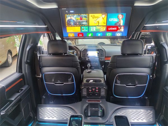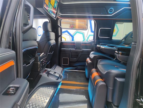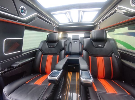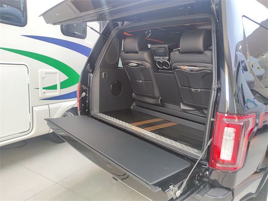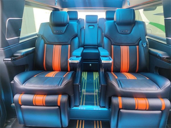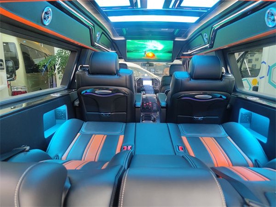 这款车的油箱是136升的,加满油可以续航1000公里左右,后备箱的空间也特别大。正副驾驶座椅后方配备了办公小桌板,满足出行中的办公学习等需求。上方采用了半隔断互联网电视,搭配全车索尼的音箱,带来了很好的娱乐体验及视听感受。下方配备了空气净化器,保证了车内的空气质量。侧墙部分除了纳帕真皮包覆还有着大量氛围灯的点缀,以及镀铬涡轮出风口格调十足。