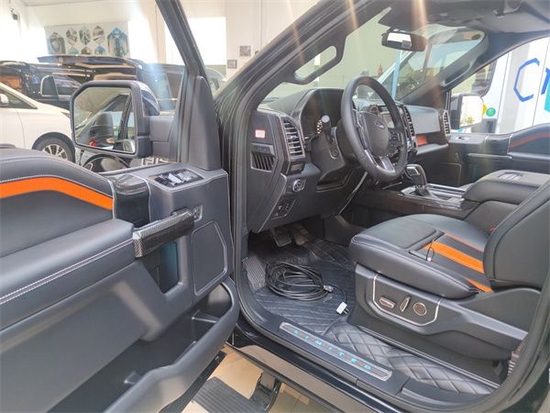 大家好,商务车解说,我是鲁秋君。今天小编要为大家介绍一款既能商务接待,又能玩水玩沙漠的越野商务车,福特勇猛者。福特勇猛者有原形车和改装车,外观更有白色和黑色之别,喜欢越野的朋友,这款车子很适合。F150勇猛者SUV外观颇具动感,内饰豪华,配置丰富,同时兼具跑车的动力性能、越野车的全地形制霸能力和豪华轿车的乘坐舒适性,而且它的改装空间也很大,如果你爱好探险和越野,那绝对不容错过,巨大的长方体蜂窝式格栅中间镶嵌着福特的大标,再加上全新设计的保险杠和发动机舱盖,使车头拥有了震撼的冲击感。