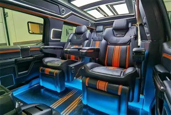 本款高顶定制款福特勇猛者不管是用于越野出行,商务办公,家庭出游都能完美完成,是一款真正的多功能豪华大七座MPV。尾门采用天地门可开启。不管是户外垂钓还是去往大草原享受大自然的美好都会给您带来意向不到的惊喜。对于本款车型阿辉就介绍到这里,感兴趣的朋友可以在下方留言评论,关注阿辉带您了解更多商务豪华座驾。