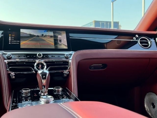 22款宾利飞驰三面翻转中控面板,当按下发动机起动按钮时,仪表板中央的饰面无声地滑动翻转,可呈现出一个12.3英寸的触摸屏,该屏幕上配备三个可自定义设置的数字界面。内饰用料顶级,手能触及的地方非真皮即实木,选材不计成本。中控台大面积的胡桃木饰板仿佛玉石一般润泽,让人非常舒心。