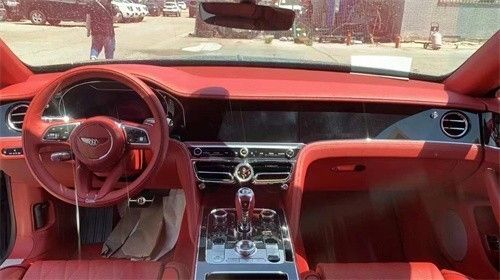 2022款欧规飞驰4.0V8深宝石蓝/热刺红/黑钢琴木。主要配置: 1、Mulliner驾驶配置配22英寸黑色喷漆轮毂 2、飞驰炫黑套件 3、照明式飞翼“B”字形徽标 - 亮黑色 4、滑盖全景天窗,含遮光板和化妆镜 5、宾利旋转显示屏 6、氛围灯套件 7、反衬缝线及座椅滚边(帝王蓝) 8、标准刹车碟配红色卡钳 9、电池充电器-欧洲标准适配器