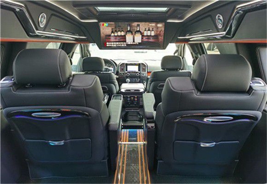 21款中规版福特F150勇猛者SUV以美国进口的福特F150为原型车,精工打造,通过后尾箱与车体的连接,形成与车身稳固的一体式车厢,同时在原有五座的基础上,加装第三排真皮座椅,中规版福特·F150勇猛者。2020款中规版福特 F150 勇猛者SUV 在保留其原型车强悍性能的同时合理利用尾箱空间,将其打造成为一个大型豪华舒适的7座型SUV。