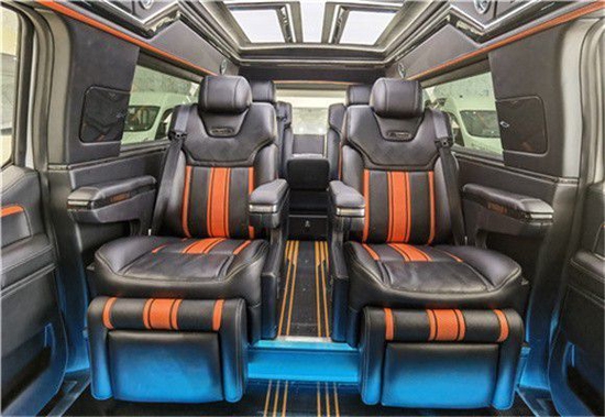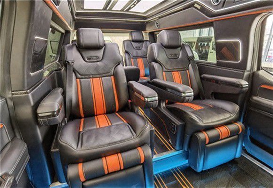 由于勇猛者说白了还是改装而来,所以说在内部设计上面每款勇猛者可能都不同,因为每个人喜欢的风格都不一样,就像下面的图片一样,会有很多不同的内饰设计风格,不过笔者发现有一点是大家都比较统一的,就是座椅布局上几乎都采用了2+2+3的座椅布局形式。