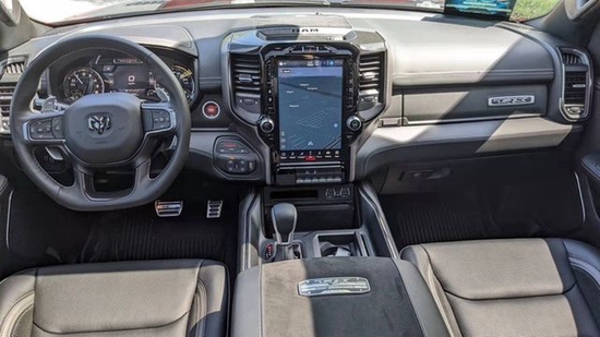 22款道奇霸王龙内饰部分进一步强化了其高性能版本的形象,中控台和座椅随处可见的TRX标识便是最好的例证。同时,作为道奇家族的旗舰车型,新车还配备了12英寸竖置中控屏幕,除了支持蓝牙、导航和车载Wi-Fi等常见功能,还支持AppleCarPlay和Android Auto手机映射。