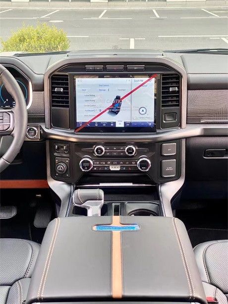 2021款福特F150车内配备标准独特的皮革和布艺装饰的座椅,驾驶员侧的电动十向调节。这些座椅同时具备记忆功能。中央控制区搭配了触控式显示屏,其下方则是多媒体控制区及空调面板,采用旋钮+物理按键的组合。中控功能区域可分为三个小控制区,最上端为音响控制及导航控制,中间为收音机调节控制,最低端为空调及座椅加热控制。
