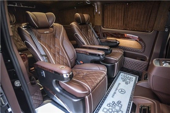 2022款奔驰威霆商务车配备了航空皮革多功能座椅,同时,由于客舱空间大,在当前定制的全分隔车型中,前排座椅,后排座椅与前排之间的分隔距离也是最大的,前排座椅具有6种功能调节,安全头枕,固定扶手,升降式脚凳以及通风,加热,旋转和气动按摩功能,沙发后排座椅,双滑轨向前和向后滑动,可倾斜180度,可用作床。