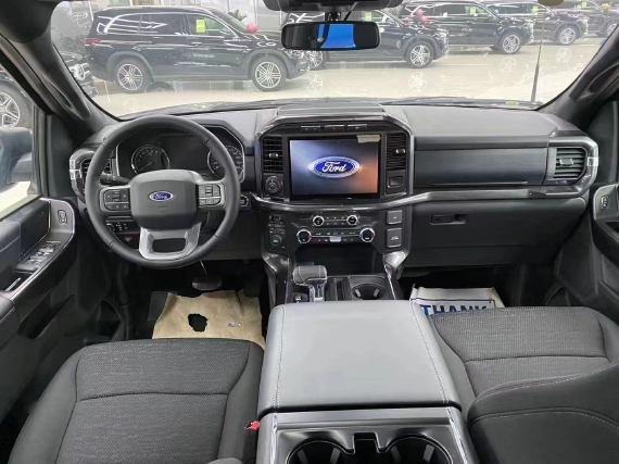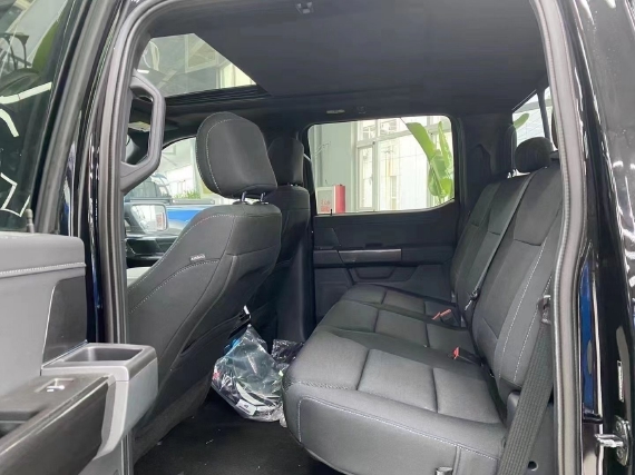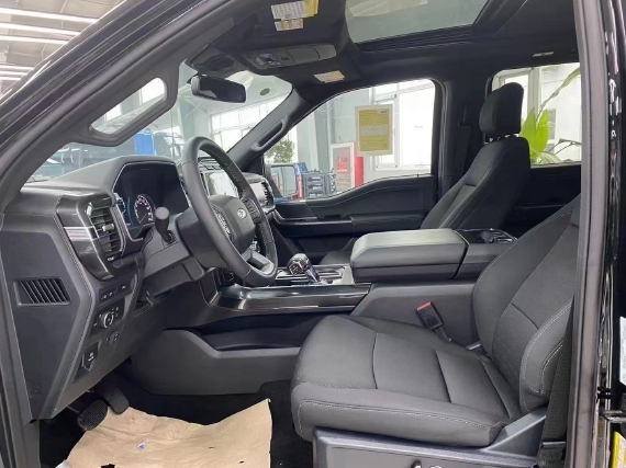 2021款福特F150车内配备标准独特的皮革和布艺装饰的座椅,驾驶员侧的电动十向调节。这些座椅同时具备记忆功能。中央控制区搭配了触控式显示屏,其下方则是多媒体控制区及空调面板,采用旋钮 物理按键的组合。中控功能区域可分为三个小控制区,最上端为音响控制及导航控制,中间为收音机调节控制,最低端为空调及座椅加热控制。在内部空间的庞大基础上,福特也提供了非常具有舒适性与服务性的内饰配置。另外,新车还配备了一块大尺寸的全景天窗。
