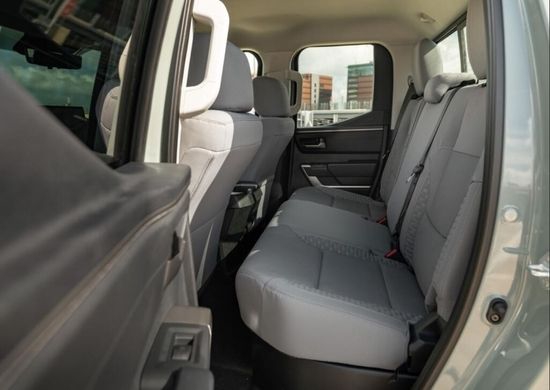 2022款丰田坦途3.5TT座椅提供有皮质包裹,整体的造型也非常宽大,在中央扶手区域的设计上也采用了非常方正的造型设计,并且可以看到前排的储物空间设计还是非常丰富的。