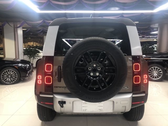 2022款路虎卫士 (配置|询价)新车车头依旧使用了方方正正的设计元素,方形前灯组内有半圆形光源,前进气格栅的造型设计十分简洁并带有经典的“LAND ROVER”绿色logo,前机盖边缘的“DEFENDER”车型标志也得到了保留,前保险杠下部带有大面积的银色护板,整个前脸的层次感分明,也显得非常厚重。
