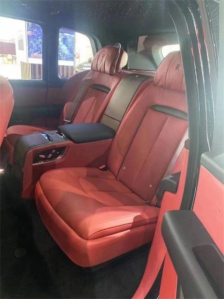 劳斯莱斯库里南布局,高级真皮座椅,档次很高,乘坐也非常舒服,后排大沙发式座椅,可以任意调节座椅角度,让宾客沉浸于身心舒适的享受之中,这里还有劳斯莱斯威士忌酒具、香槟及水晶杯,令您与宾客随时随地沉醉于美酒相伴的缱绻时光。