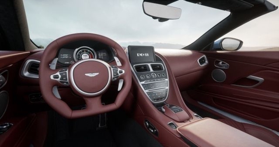 侧身两侧的梯形进气孔可以及时排除发动机在高速运转时候产生的热量,中央穿过的镀铬线条上具有LED的侧向转向灯,斜上方的方形反光镜看上去并不大,这主要是考虑到空气动力学。内饰部分,该车整体设计与其它DB11车型无异。但在配色上,新车采用了蓝色和白色的两种浅色皮质大面积包裹,搭配黑色中控区域,并在中控区域内侧两边有碳纤维装饰,尽显高雅。