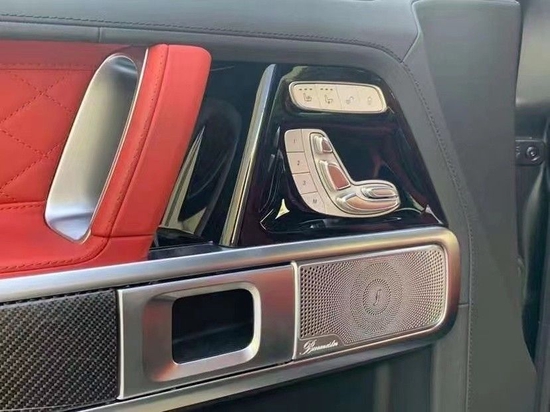 22款奔驰G63 (配置|询价)豪华精致的真皮包覆提供了足够的舒适性和支撑性,通风和加热功能让乘客免受高温和寒冷的煎熬。中控台多处均采用碳纤维材料覆盖,带彩色TFT显示屏的AMG仪表盘、AMG主菜单和单独的挡位显示器以及采用白色照明的AMG门槛。名贵的选材及精湛的内装令人拍案叫绝。