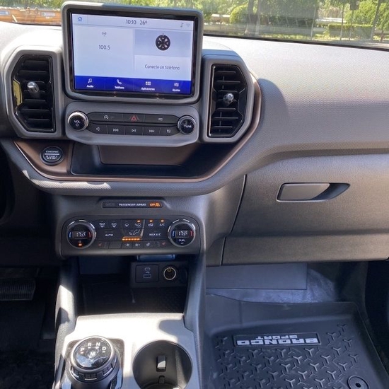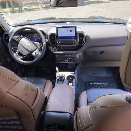 2022款福特烈马内饰的设计,走的是“简洁大方”路线,不需太多的花里胡哨,但同时细节上也决定该车的质感之处,以棕色+黑色、米色+黑色两种布局搭配,既显得复古又极具品质感。而全车最为亮眼的就是搭配12英寸的福特SYNC 4智能中控系统,不过只有在中配以上才有配备,系统功能十分丰富,对于现如今科技当道,安全为王的时代,Bronco 当然不能缺席。