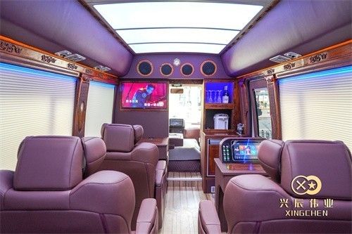 车上准备有多功能、小型桌,可用于开展商务、家庭、或是其他用途。随车搭载的音响系统,高清电视等等,配套措施真是齐全。