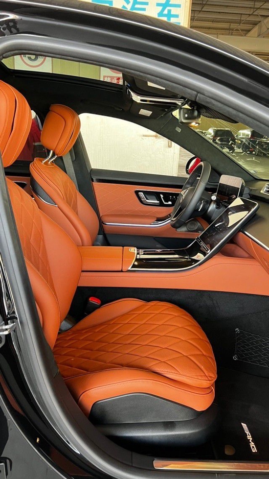 采用了悬浮式的纵置大屏,液晶仪表采用了悬浮式的风格。内饰方面,新车中控台搭载全液晶仪表盘、液晶中控屏和HUD抬头显示器,均可支持MBUX人机交互系统,搭配后排配备的两个液晶显示屏,营造丰富的科技感。此外车内座椅与内饰采用大量Nappa皮革包裹,凸显豪华质感。