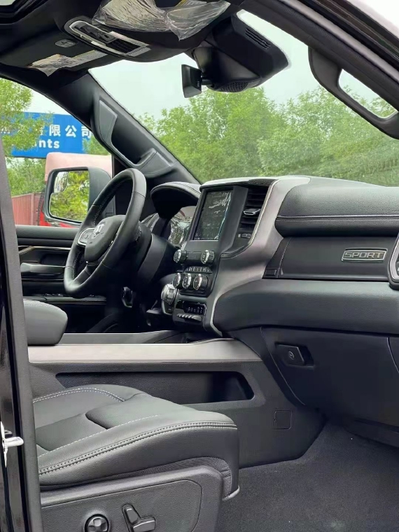 道奇公羊运动皮卡在内部设计上还是延续了美式那种比较粗犷的风格,规整的中控台设计看上去比较死板,但丰富的配置会让你不由得为其称赞。中控台的设计简洁硬派,符合公羊的气质。仪表盘底边有花纹,则更加凸显了这款车的文雅性。软性材质的仪表台设计,摸上去手感非常舒服,并无些许生硬之处。