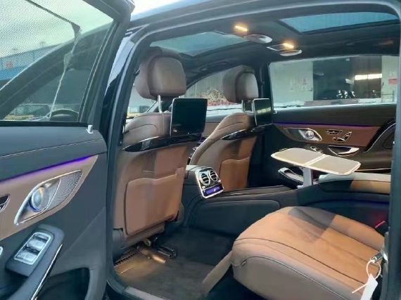 配置:曜石黑,全景天窗,棕色高级纳帕菱形真皮座椅+真皮顶棚,黑钢琴漆流畅线条,桃木方向盘,柏林之声3D环绕音响,抬显系统,环车影像,夜视辅助,后排冰箱,迈巴赫专属四座包:(后排通风、加热、按摩、气动调节座椅,后排娱乐DVD,延长腿托,迈巴赫专属办公桌),迈巴赫专属20寸大饼轮,高性能轮胎。