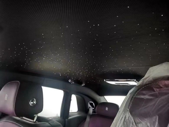 新车在副驾驶前方的星光饰板,以850颗星星环绕散发亮光的“Ghost”车名,只有在车辆启动时,发光的星簇及字标才全然可见。这背后是152支LED灯源、每个2毫米的光导以及90000余个激光蚀刻点才能产生的闪烁效果,从而呼应新车配备的全新流星车顶。