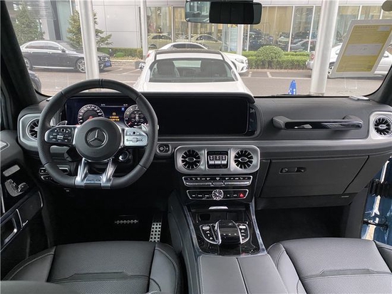 21款奔驰G63 (配置|询价)豪华精致的真皮包覆提供了足够的舒适性和支撑性,通风和加热功能让乘客免受高温和寒冷的煎熬。中控台多处均采用碳纤维材料覆盖,带彩色TFT显示屏的AMG仪表盘、AMG主菜单和单独的挡位显示器以及采用白色照明的AMG门槛。名贵的选材及精湛的内装令人拍案叫绝。