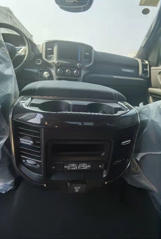 道奇公羊在内部设计上还是延续了美式那种比较粗犷的风格,规整的中控台设计看上去比较死板,但丰富的配置会让你不由得为其称赞。中控台的设计简洁硬派,符合公羊的气质。仪表盘底边有花纹,则更加凸显了这款车的文雅性。软性材质的仪表台设计,摸上去手感非常舒服,并无些许生硬之处。