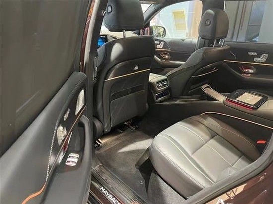 迈巴赫GLS600后排带有巨大的腿拖,其后排座椅最大倾斜角度大43.5度,后排腿部空间最大达1.34米新车还配备了该车型专属的64色氛围灯、名为“NO.8 mood”香氛系统和Burmester品高端3D环绕音响系统。