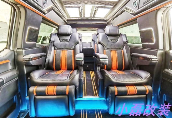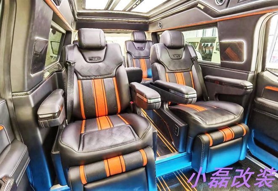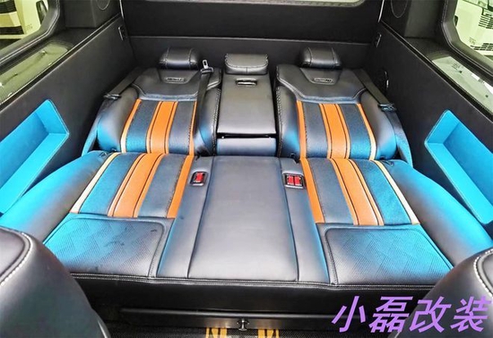 由于勇猛者说白了还是改装而来,所以说在内部设计上面每款勇猛者可能都不同,因为每个人喜欢的风格都不一样,就像下面的图片一样,会有很多不同的内饰设计风格,不过笔者发现有一点是大家都比较统一的,就是座椅布局上几乎都采用了2+2+3的座椅布局形式。