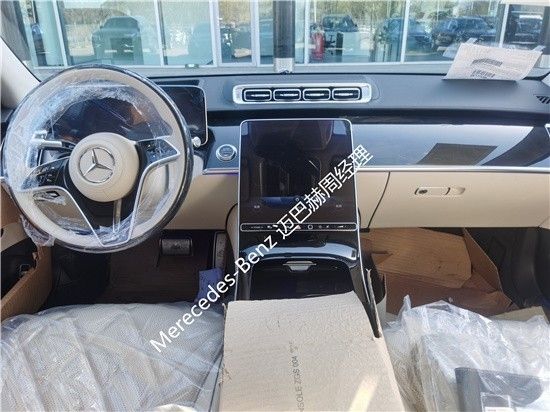内饰方面,与普通版奔驰S采用相同布局,但设计与用料更加豪华,双手触及之处基本上都用Nappa真皮包裹,典雅也更具时尚感。全新梅赛德斯-迈巴赫S级在后排提升较大,轴距加长后拥有更大的乘坐空间,与更高级的后排座椅,腿托和脚托的调节行程还分别增加了50mm和10mm,突显后排乘客的尊贵感。后排双独立行政座椅椅背最大倾斜角度高达43.5°,能让后排乘客拥有更好的乘坐体验。