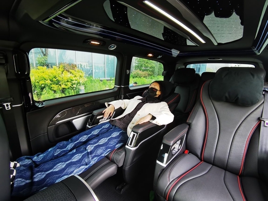 进口罗伦士天舟后排半躺:旋转二排座椅,与三排座椅腿拖无缝拼接,快速形成半躺姿态,身心放松,舒缓旅途疲惫