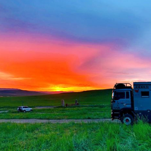 会客区真皮软包对卡座沙发满足4人乘坐,卡座沙发搭配气动升降餐桌可变为一张沙发床。固定式安全带保护行车途中乘客的人身安全。坐垫厚实,弧形靠背也提供一定的支持感,整体来说乘坐舒适感还是不错的;沙发内侧墙壁2个独立外推窗,提供采光及通风换气效果;三菱重工变频空调(单冷)制冷效果快,可手动调节温度,吊柜方便日常收纳物品。本款房车是越野专用方舱,热断桥硬化铝骨架六层加强保温车身,厚度60mm,耐零下30度。标配400L清水、1600AH锂电、德国纽福克斯3000W+3000W逆变器(防辐射处理)等。