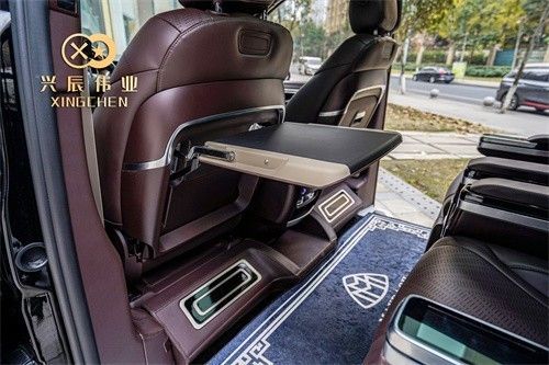 后排座椅采用高端定制的商务座椅,前排座椅后背搭载折叠的小桌板,方便后排乘客处理商务文件或者在车内就餐。专门定制航空头等舱按摩座椅可以全身气筒按摩,舒适感受,更能多项调节,通风加热。疲乏时也可展开腿托,舒适休息。