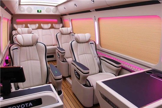 丰田考斯特车上的座椅,我们可以根据自己的选择定制,真皮座椅,豪华航空座椅都可以。如果有需要还可以安装沙发床,方便我们在旅途中休息。丰田考斯特在改装方面不会惧怕和任何商务车对比。车内窗帘的的选择上也有多种方案,豪华的布艺窗帘以及自动的百褶窗帘都在我们的选择范围内,随心的定制是其他任何商务车都无法企及的。