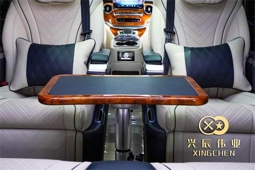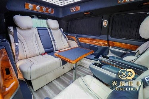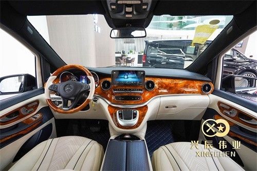 奔驰V260 (配置|询价)L进行高端定制的奔驰商务车,前脸采用满天星元素的超大开口保险杠,下方两侧的高亮LED示廓灯,引擎盖使用奔驰立标,加高的游艇式车顶,整体搭配起来让这辆车显得十分的高贵和优雅。