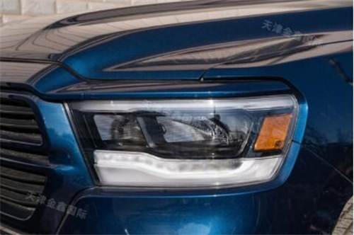 道奇公羊车头使用了小幅前倾的俯冲式设计思路,意在突显霸气和威猛。新车的眼神中没有透露出一丝的活泼或者神韵,唯一展现出来的只有凶狠。 道奇公羊一改道奇标志性的十字形前进气格栅,采用独特的全新造型,黑色的塑料材质前格栅代替了美式皮卡惯用的镀铬处理,使新车看起来十分沉稳。