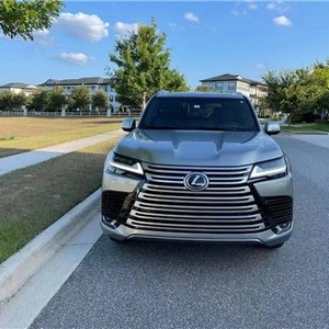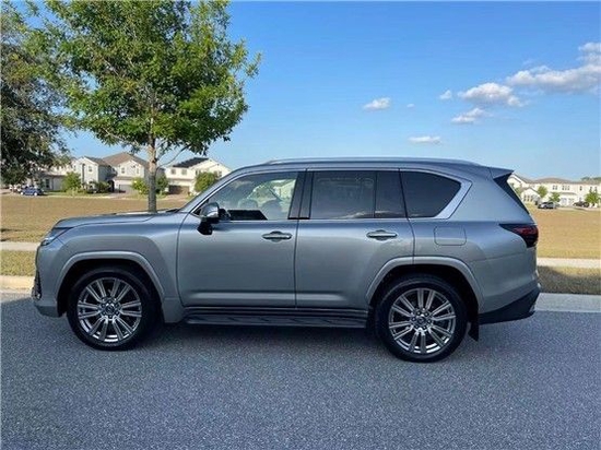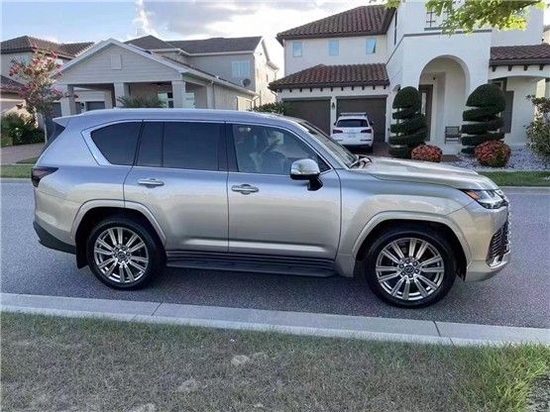 雷克萨斯LX600前脸部分,采用了七条幅的镀铬装饰,比老款雷克萨斯LX570提升一大截。两侧配LED大灯造型别致,点亮后的效果有点儿“耐克标”的样子。银色的金属LOGO位于前进气格栅上,使得整个前脸看起来年轻又大气。
