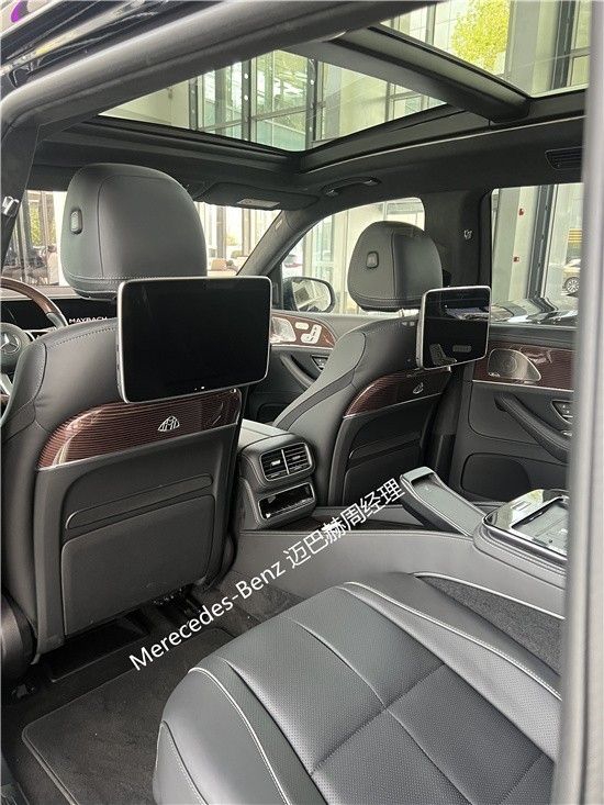 迈巴赫GLS600后排带有全景天窗、独立的多媒体娱乐系统、独立分区空调,车内香氛装置,可选车载冰箱、后排小桌板。整车都是夹层玻璃,搭配整车降噪组件隔音非常好,车内带64色氛围灯,26喇叭的柏林之声音响系统。
