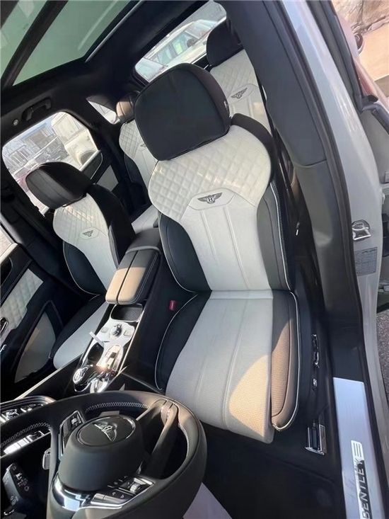 22款宾利添越真皮座椅摸起来很细腻,支撑性非常好,座椅处的缝线是纯手工打造的,相对于前排的高科技配置比较多,后排的乘坐空间宽敞舒适。