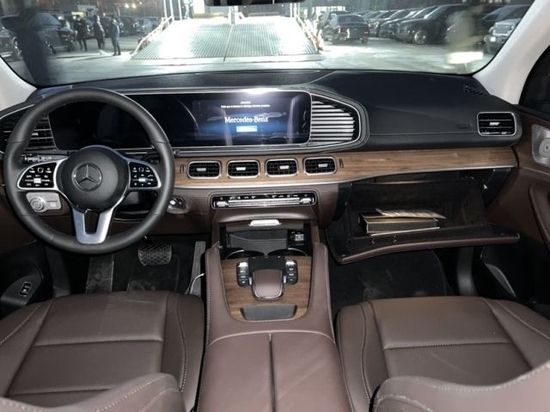 22款加版奔驰GLE450 内饰则延续了现款S级 (配置|询价)(配置|询价)的造型,用的是贯穿式中控台双屏设计,12.3英寸的双液晶显示屏带来的科技感爆强,并且搭载了奔驰最新的MBUX人机交互系统,采用搪塑,皮革,实木,金属和碳纤维材质,三幅式底方向盘动感十足,头顶一个全景天窗,座椅用的是双色搭配的运动风格座椅,舒适性和包裹性也比较好。
