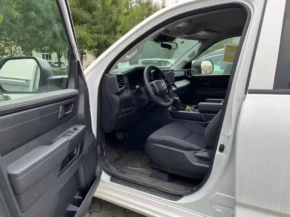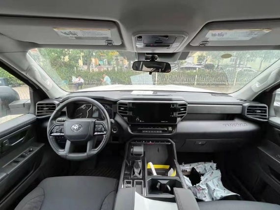 2022款新款丰田坦途3.5TT座椅提供有皮质包裹,整体的造型也非常宽大,在中央扶手区域的设计上也采用了非常方正的造型设计,并且可以看到前排的储物空间设计还是非常丰富的。
