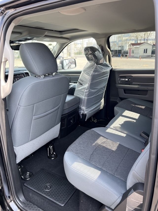 2022款道奇公羊1500 5.7L V8 HEMI发动机 金属漆 暗夜金属黑色外观 20寸熏黑轮毂 刘经理:17694965222《同微信》电动天窗 阿尔派音响 8.4寸导航屏 倒影 电眼 拖钩 绒布座椅 座椅加热 方向盘加热 感应雨刷 遥控启动 电动折叠后视镜 多功能方向盘 脚踏等