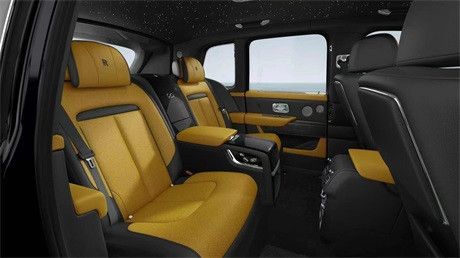 劳斯莱斯库里南新车提供后排3座及2座独立座椅设计沙发一般的座椅采用真皮包裹,配合更加松软的头枕让劳斯莱斯的奢华体验更加丰满。其中,四座版车型采用了大尺寸的中央独立扶手,并可根据需求进行定制,例如增加冰酒柜、后排桌板、娱乐设施等。